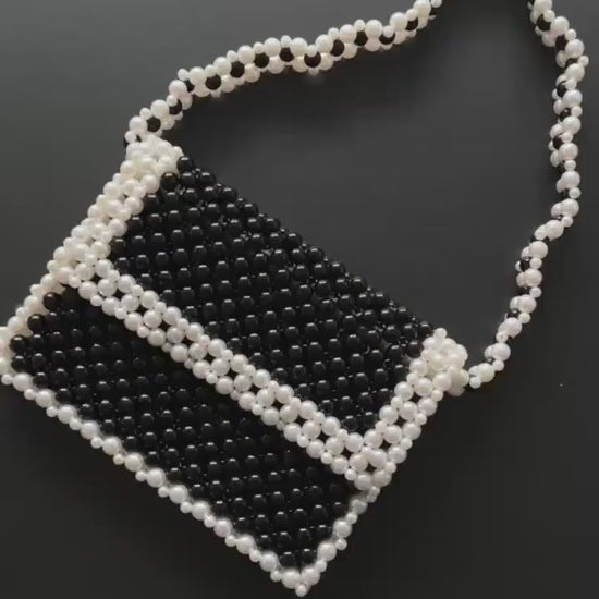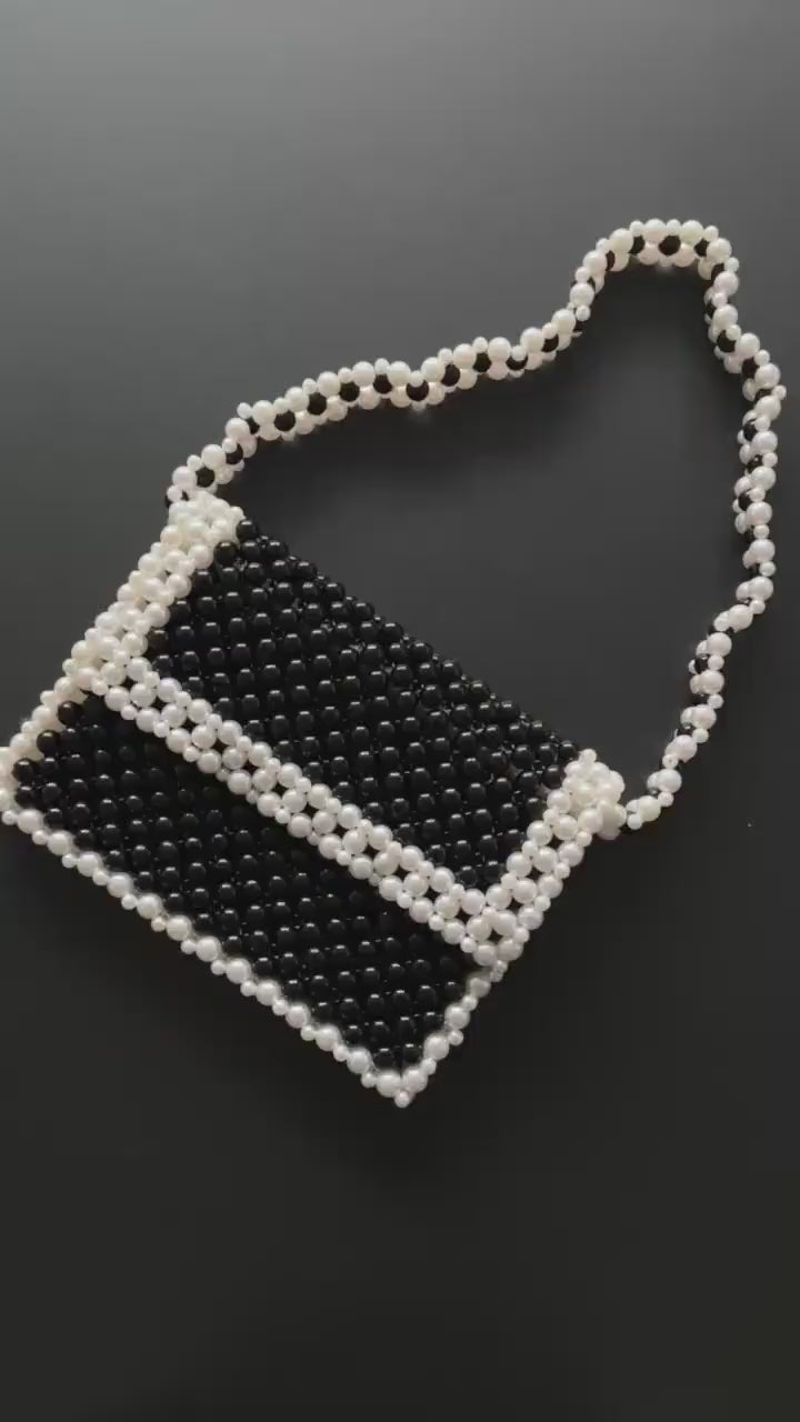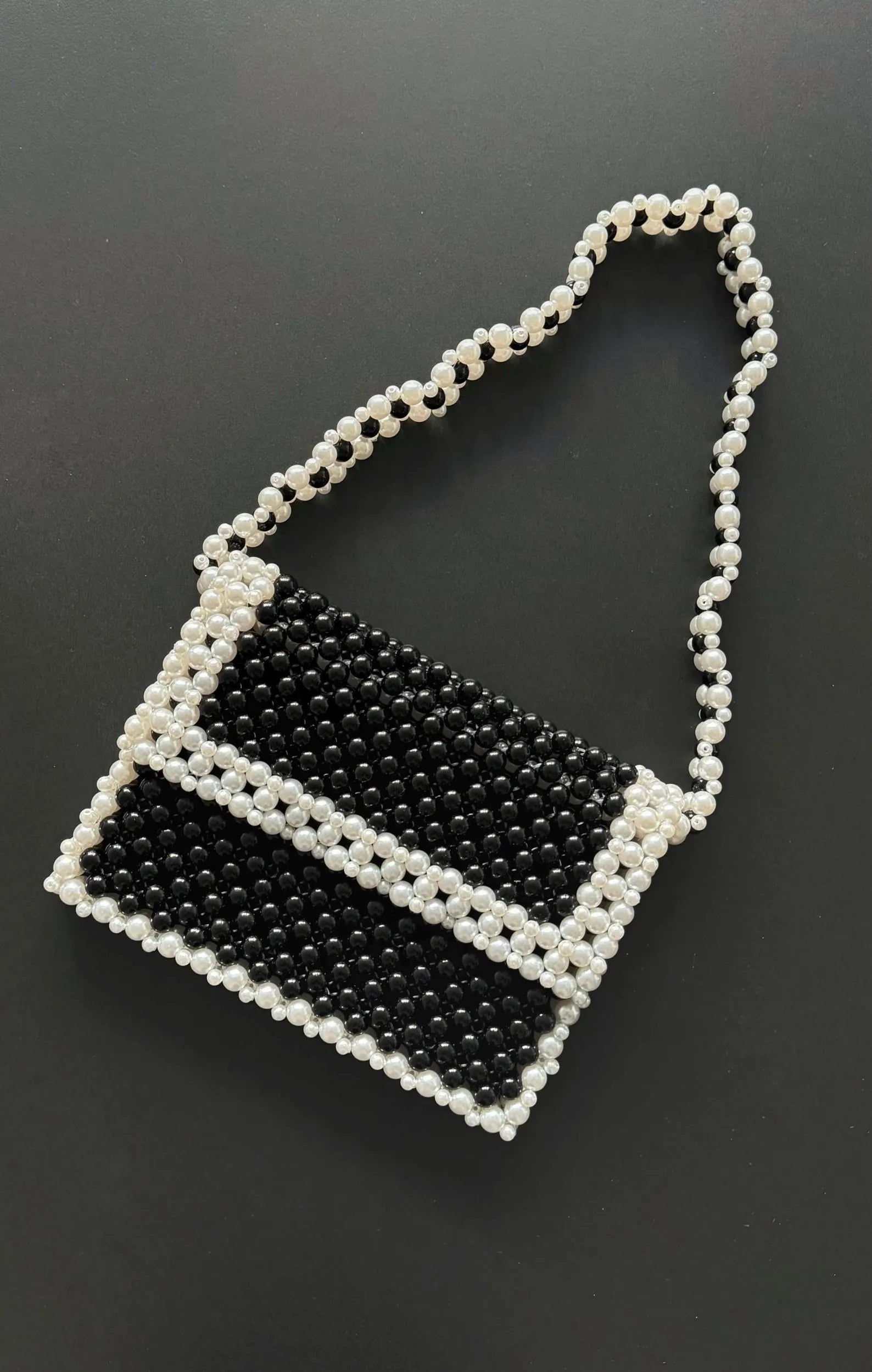 A chic black & white beaded shoulder bag with pearl strap — timeless, elegant, and spacious enough for your essentials. Perfect for evenings, occasions, or a classy day look.