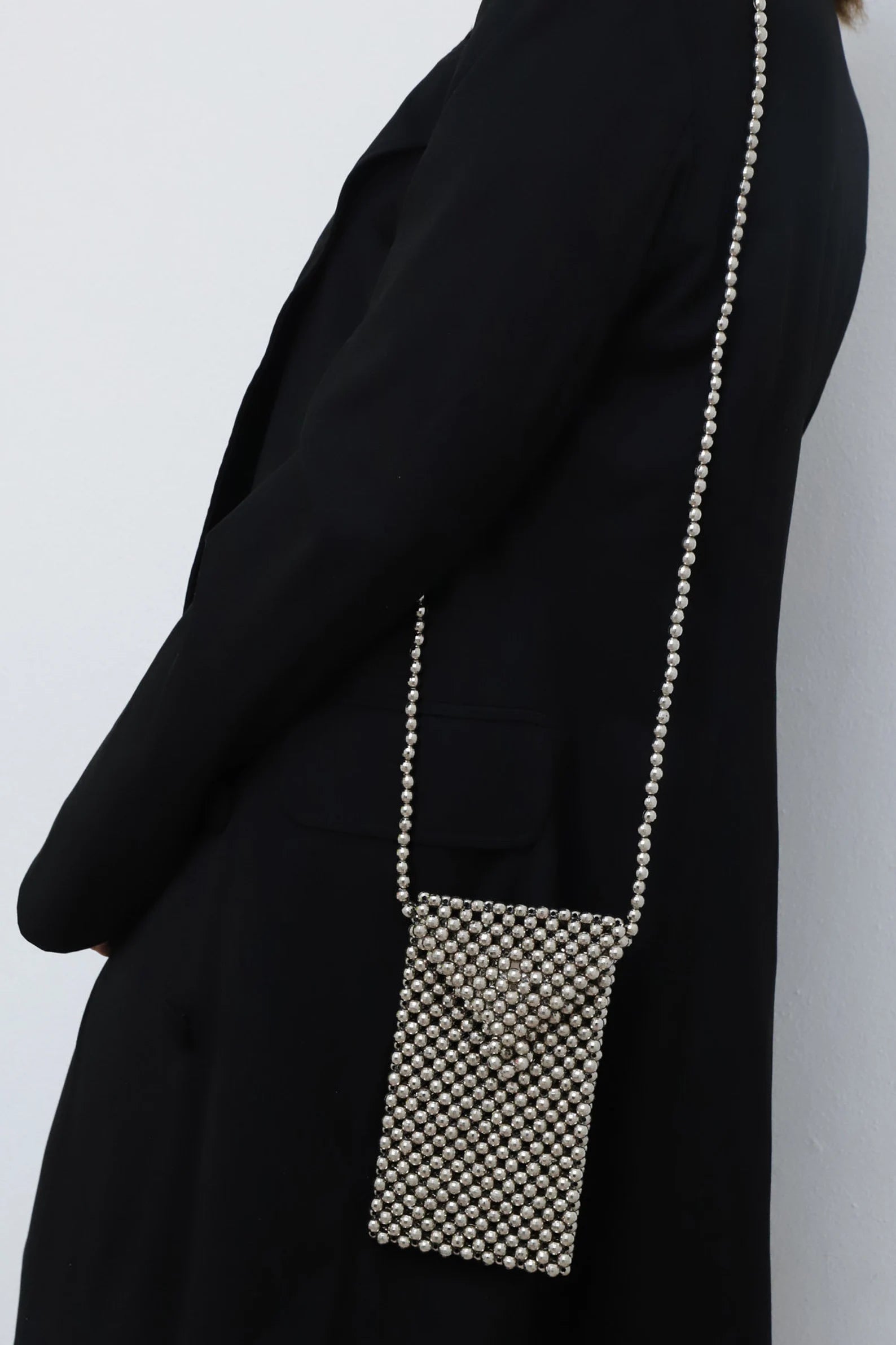 Silver Beaded Mobile Crossbody